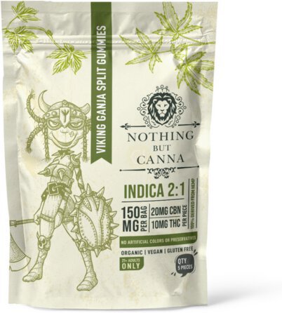 Nothing But Canna Viking Ganja Split Gummies Indica 1 10mg Thc & 20mg Cbn 5 Pieces 150mg Bag